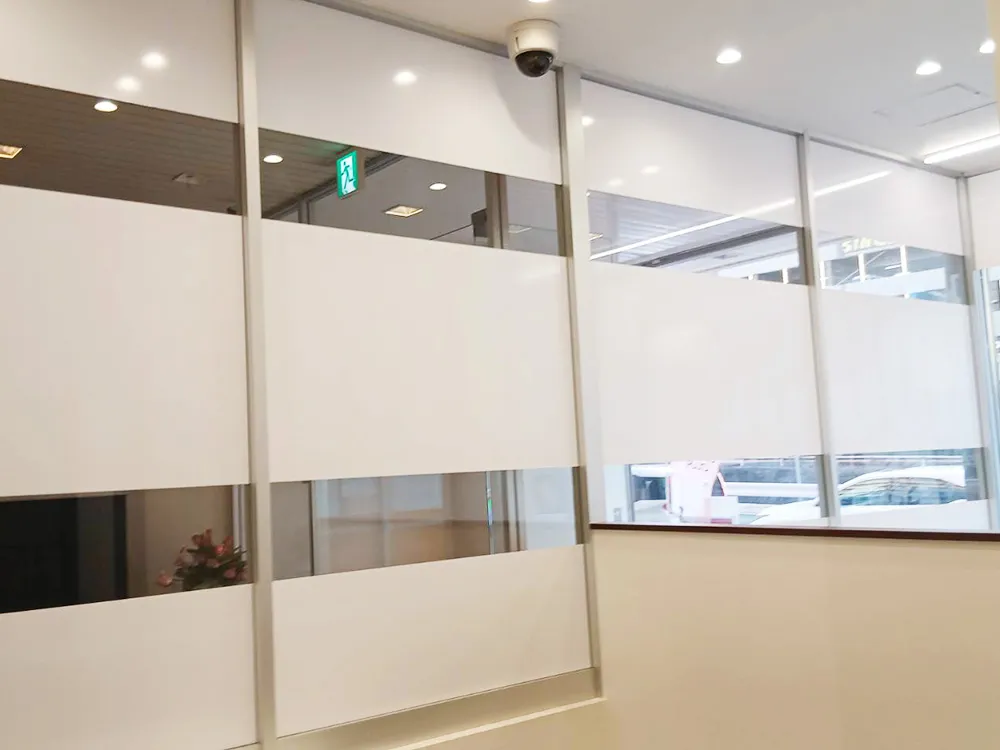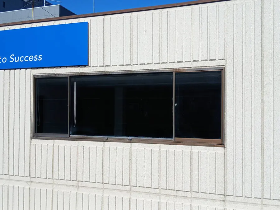 現場環境や状況により表側(屋外側)から貼るか、内側(屋内側)から貼るかのパターンがありますが、今回は内側から設置しました。