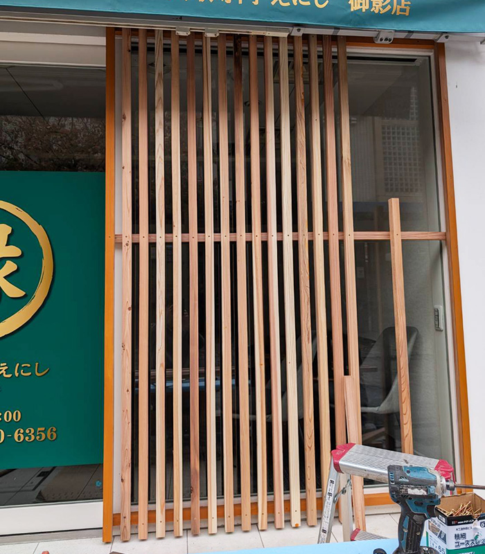 木製ルーバーによりお店のカラーとマッチした暖かみのある雰囲気となりました。